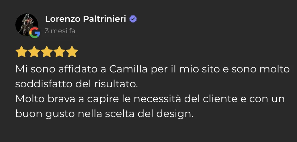 © 2025 CAMILLACINODESIGN&DEV - Tutti i diritti riservati - p.iva 04601200167 - via Papa Giovanni XXII - Rovetta (BG) - 24020